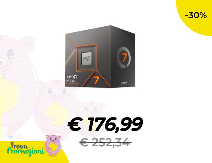 ๐๐ผ Processore AMD Ryzen 7 8700F (8 Cores/16 Threads , Ryzen AI, 65W TDP, AM5 Socket, 24MB Cache, Boost di Frequenza fino a 5,0 GHz max, dissipatore ad aria "Wraith stealth cooler")