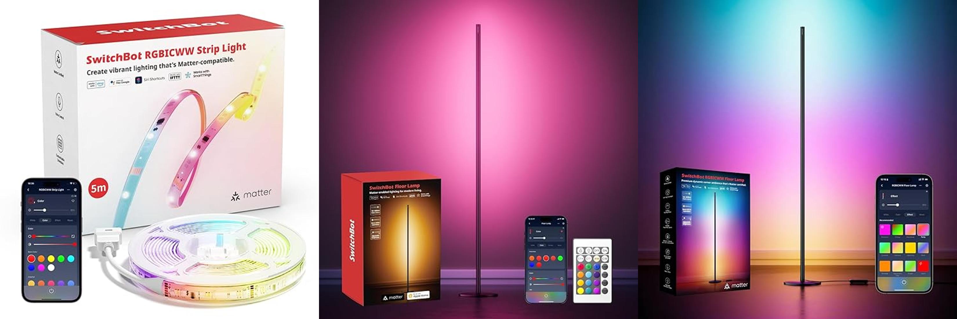 ๐๐ผSwitchBot Matter RGBICWW Lampada da Terra, Luce Calda/Fredda, Piantana Lampada da Terra LED funziona con Apple Home, Alexa, Google Home, 16 Mln Colori, Sincronizzazione Musicale, Modalitร Scena