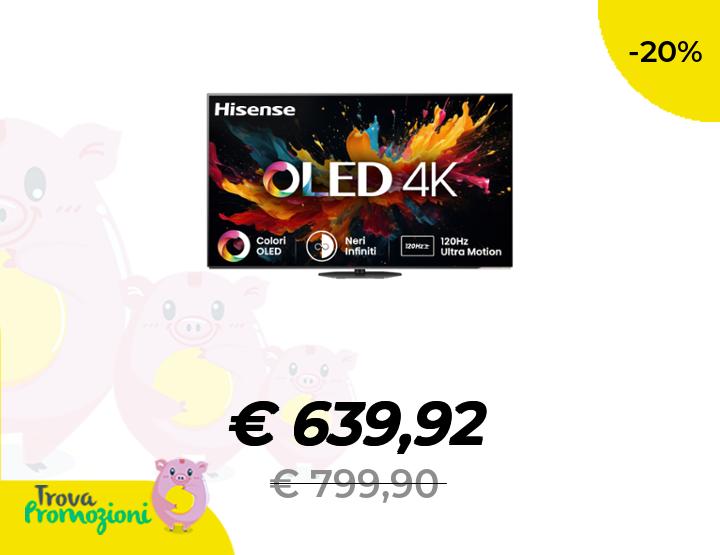 Offerte Tecnologia by TrovaPromozioni.it ๐ฐ๐ pinned ยซE finalmente pareggione OLED Hisense best buy ๐๐ผ Hisense TV 55" OLED 4K 55A8DN, Smart TV VIDAA U8, Dolby Vision IQ, HDR 10+ Adaptive, 120Hz Game Mode PRO, Dolby Atmos, Alexa Built-in, VIDAA Voice, Tuner DVB-T2/S2 HEVC 10, lativรน 4K, 55'', 2025 OLED โก๏ธ SCOPRIโฆยป