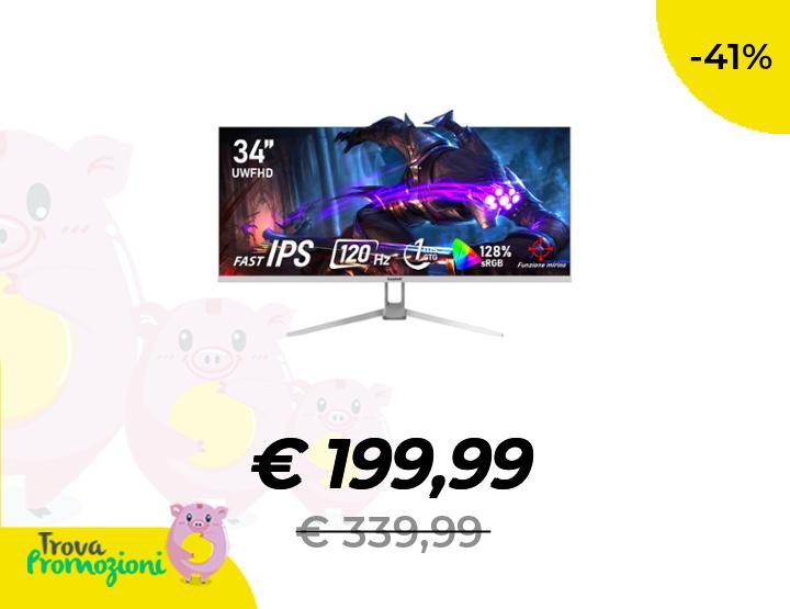 ๐น Monitor ultrawide da 34 pollici con risoluzione UWFHD (2560ร1080) che offre un'ampia visione.