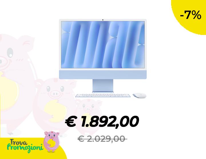 ๐๐ผ Apple iMac Computer desktop all-in-one: Chip M4, CPU 10-core e GPU 10-core: display Retina 24'', 16GB di memoria unificata, 512GB di archiviazione SSD, con accessori. Per iPhonePad; Azzurro