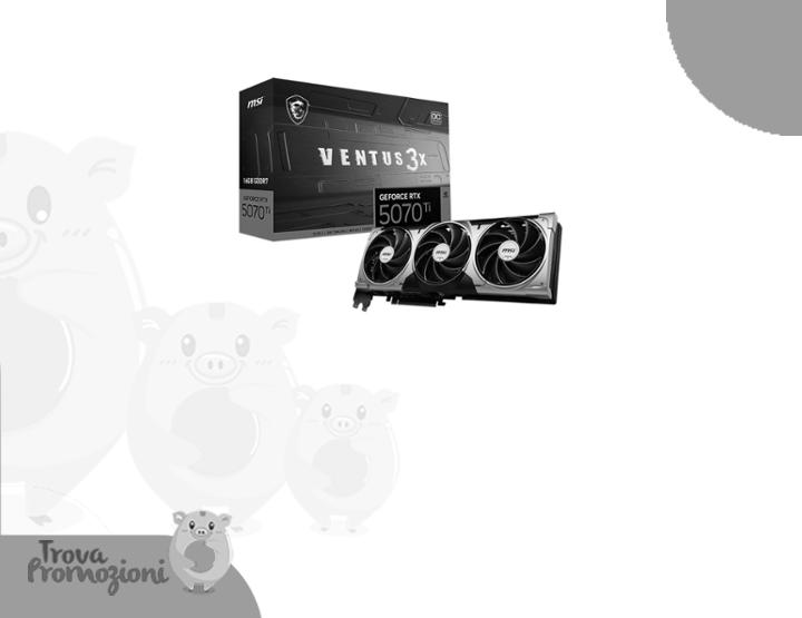 ๐๐ผ MSI GeForce RTXโข 5070 Ti 16G VENTUS 3X OC Scheda Video, 16GB GDDR7, PCIe 5.0, 8960 CUDA Core, Boost Clock 2482 MHz, HDMI 2.1b, DisplayPort 2.1b, Backplate in Metallo, TORX FAN 5.0, Zero Frozr