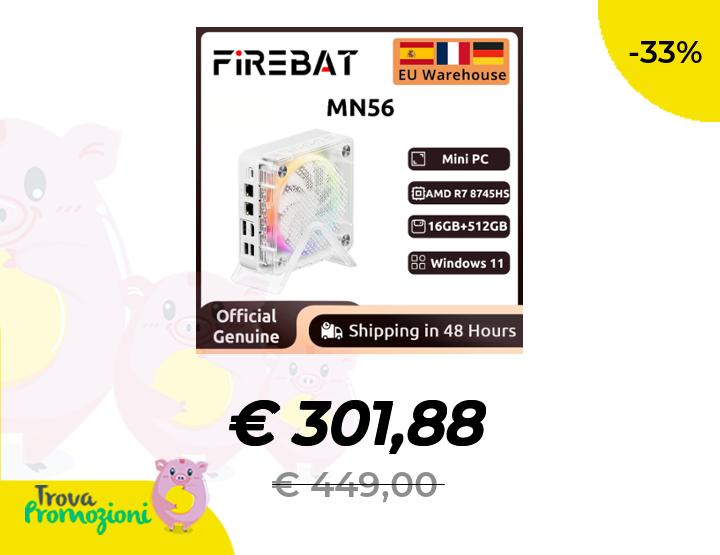 👉🏼 FIREBAT MN56 MINI PC AMD R7-8745HS Mini PC Windows11 DDR5 16 GB + 512 GB SSD 8 core Computer desktop BT 5.2 WIFI6 HDMI TYPE-C USB