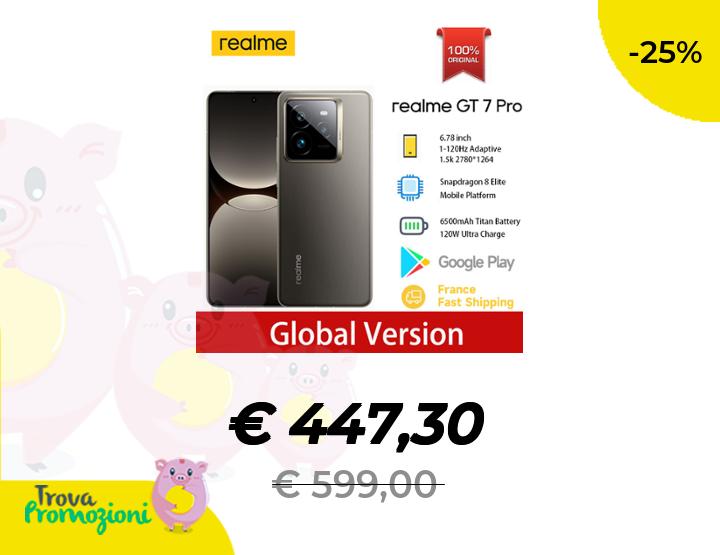 👉🏼 realme GT 7TSmartphone 5G 2025 Nuovo Mediatek 8400-Max 7000Mah Titan Batteria 120W Ultra Charge 6.8'' 120Hz Display Versione globale