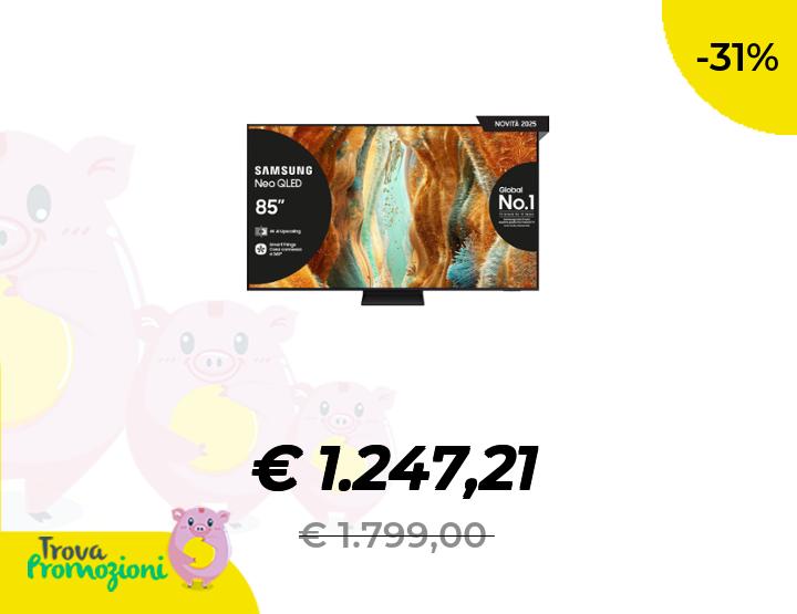๐Ÿ”น Televisore Samsung QE85QN70FAUXZT da 85 pollici con tecnologia Mini LED per una qualitร  dell'immagine straordinaria e colori vividi.