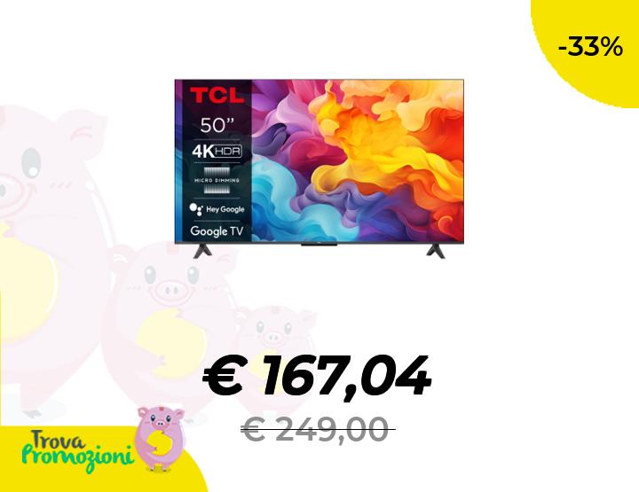 ๐๐ผ TCL 50P61B Smart TV 50" LED 4K Ultra HD, Google TV, HDR, Dolby Audio, Wi-Fi, Bluetooth, Chromecast, VESA 200x200, Nero