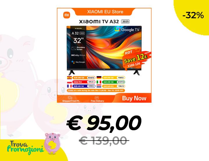 ๐๐ผ Xiaomi TV A 32, dimensioni compatte con schermo colorato, suono dinamico con audio Dolby โข , DTS-X e DTS Virtuale:X, Fini metallici di fascia alta