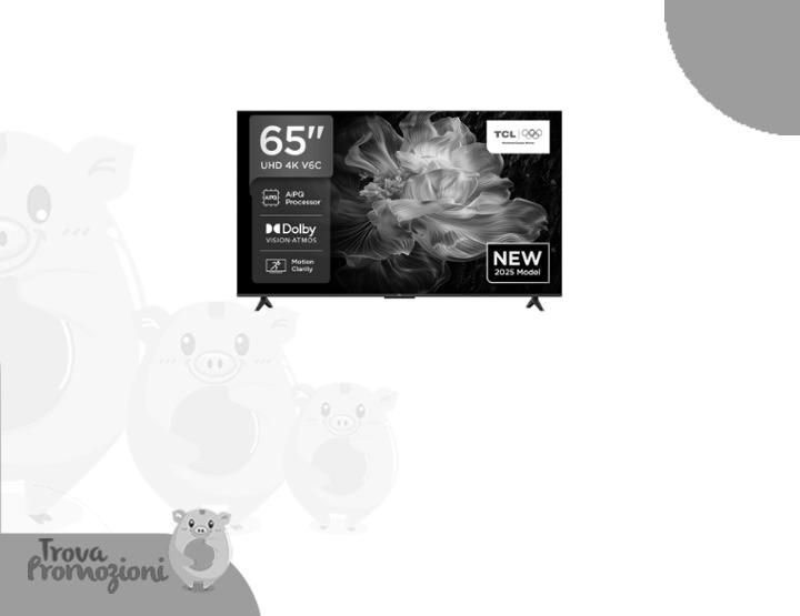 ๐๐ผ TCL 65V6C TV 65" 4K UHD Smart LED TV, 4K HDR, Google TV con design senza bordi (Dolby Audio, Motion Clarity, compatibile con Google Assistant e Alexa)
