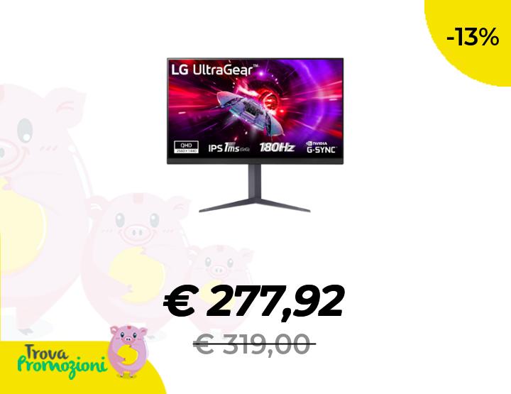 ๐๐ผ LG UltraGear 32GS75Q Monitor Gaming 32" IPS QHD (2560x1440), 180Hz, 1ms (GtG), G-Sync Compatible, AMD FreeSync, HDR 400, HDMI 2.0 (HDCP 2.2), DisplayPort 1.4, AUX, Flicker Safe, Nero