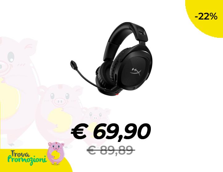 ๐Ÿ‘‰๐Ÿผ HyperX Cloud Stinger II, Cuffie da Gaming Senza Filo, Connessione a 2,4 GHz, Telaio in Plastica, Cuscinetti in Memory Foam Rivestiti in Similpelle, Autonomia Fino a 20 Ore, Adatto per PC, Nero