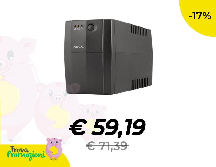 ๐๐ผ NGS FORTRESS1200V3 - Gruppo di continuitร UPS, Off Line UPS 800 VA, Tensione a Uscita Stabile di 480W per 2 Prese Schuko