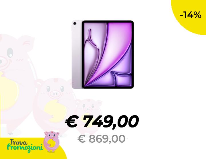 ๐๐ผ Apple iPad Air 13'' con chip M3: Apple Intelligence, 128 GB, fotocamera frontale e posteriore da 12MP, Wi-Fi 6E, Touch ID, un giorno intero di batteria โ Viola