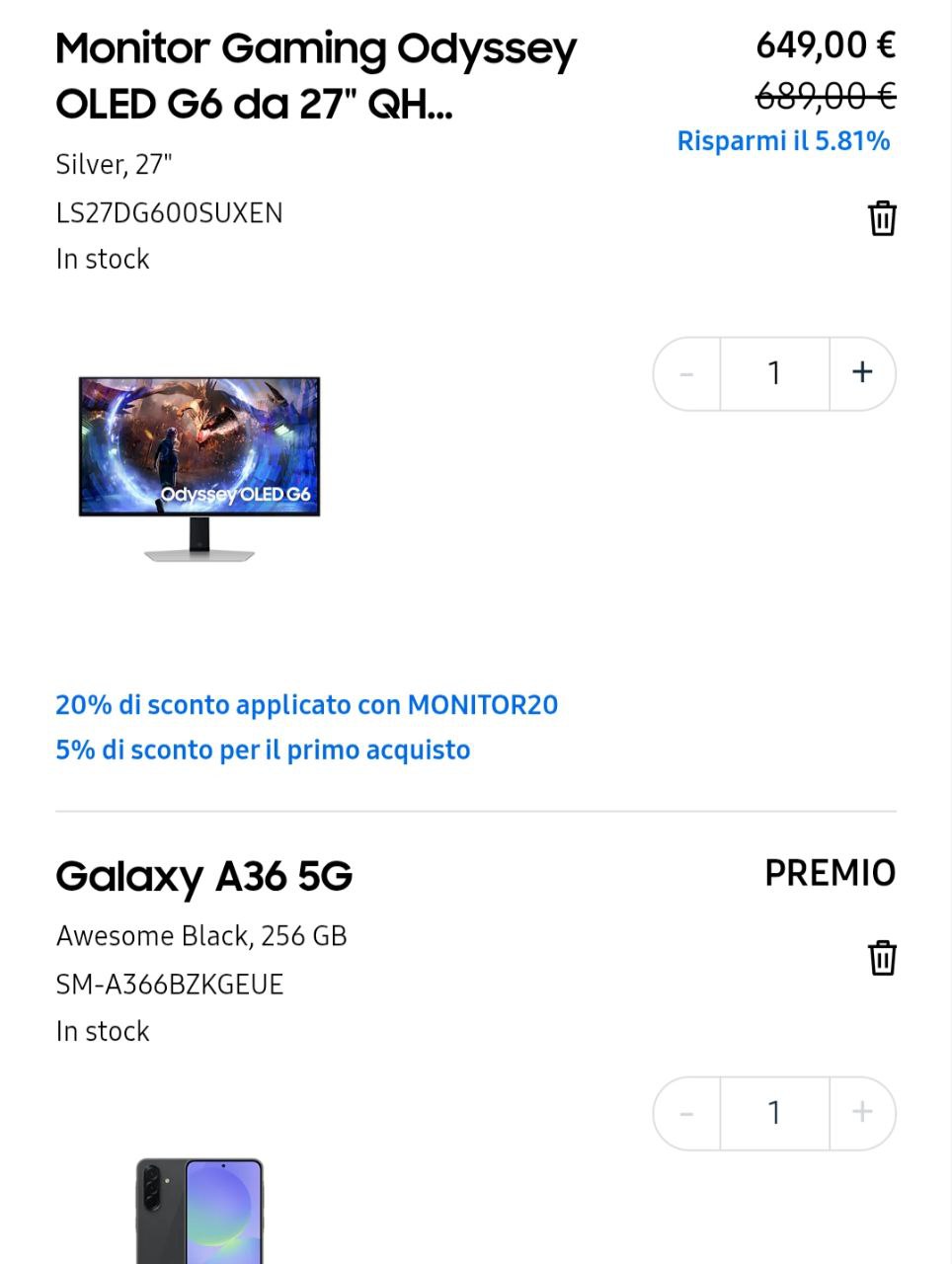MONITOR20๐ฃ Nel carrello in regalo il Galaxy A36 da 256GB (su Amazon a 270โฌ)