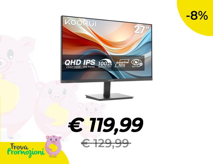 ๐๐ผ KOORUI E2721F Monitor PC 27 pollici, Quad HD IPS 100HZ, 1ms, 2560x1440, Schermo PC HDMI2.0 e VGA, VESA 100x100 mm, Adaptive Sync, Inclinazione Regolabile, Pannello ultra Sottile