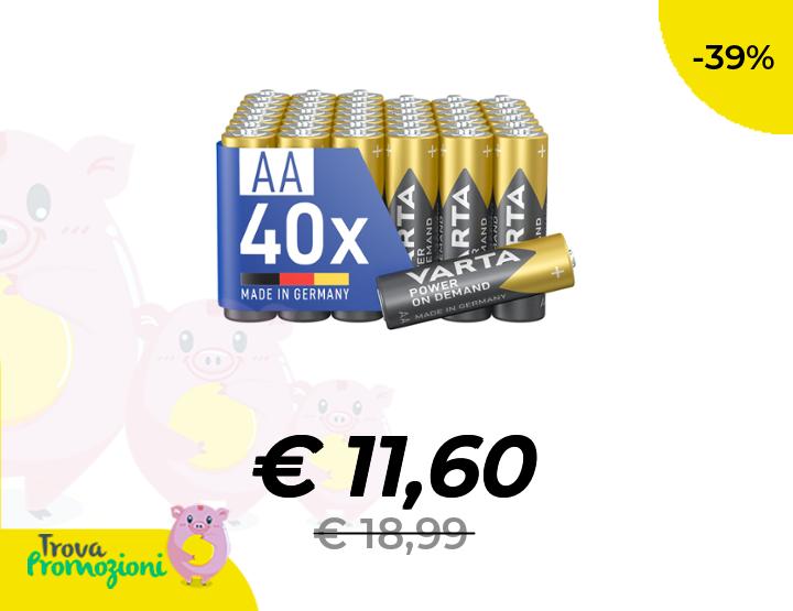 ๐๐ผ VARTA Pile AA, confezione da 40, Power on Demand, Alcaline, 1,5V, confezione in imballaggio ecologico, per accessori computer, dispositivi Smart Home, Made in Germany [Esclusivo su Amazon]