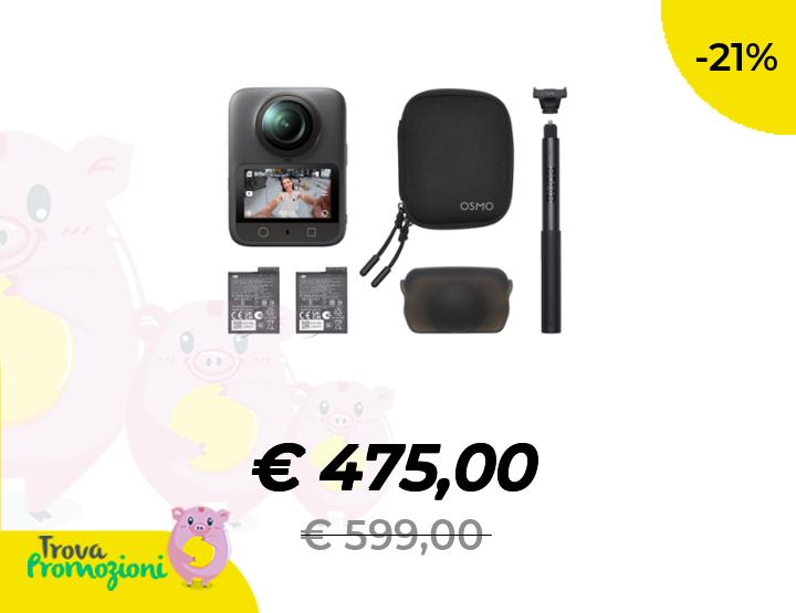 ๐๐ผ Osmo 360 Combo Essenziale, fotocamera 360 con immagini a 360ยฐ da 1 pollice, video a 360ยฐ nativi in 8K, kit con manico telescopico invisibile da 1,2 m, durata della batteria estesa con 2 batterie