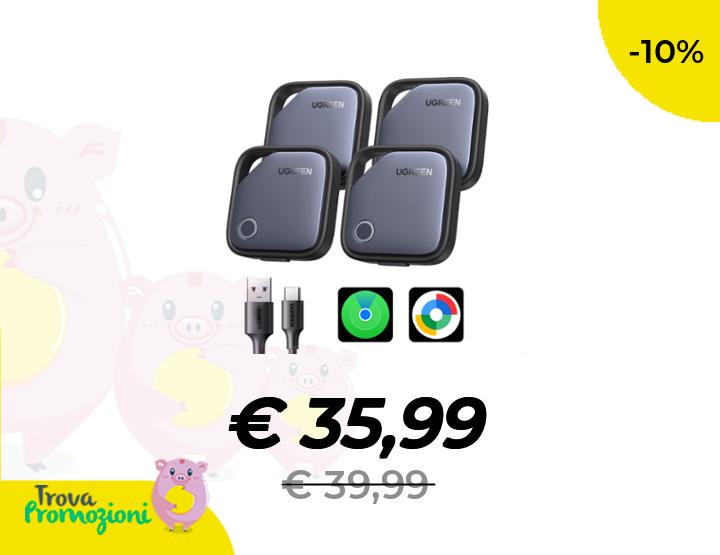 ๐๐ผ UGREEN FineTrack Duo Supporto iOS Find My o Android Find Hub Smart Finder Ricarica USB-C Localizzatore SmartTag Tracker Bluetooth per Chiavi Bagaglio Portafoglio Bicicletta Zaino Borsa (4 pezzi)