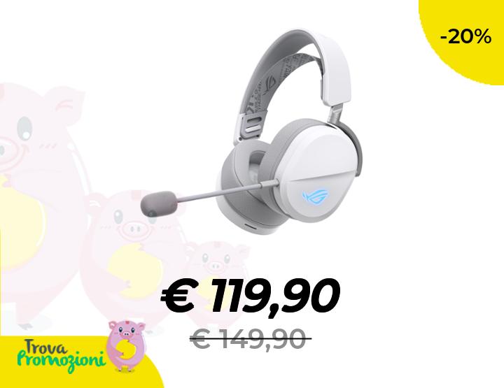 ๐๐ผ ASUS ROG Pelta, Cuffie da Gaming Senza Fili, Connessione 2.4GHz e Bluetooth, Driver Placcati in Titanio da 50mm, Microfono da 10mm, 60 Ore di Batteria, Solo 309g, per PC, PS5 e Switch, Bianco