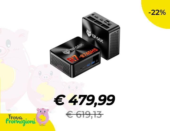 ๐๐ผ BMAX Mini PC B8A Pro AMD Ryzen 7 8745HS(fino a 4,9 GHz), 16GB DDR5 512GB NVMe SSD Mini Desktop Computer, Radeon 780M, 4K@60Hz Triplo Display DP+HDMI+Type-C/WiFi 6/BT5.2/2.5Gbps LAN, Micro Gaming PC