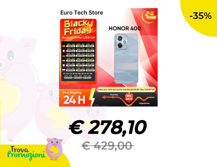 ๐๐ผ Seleziona versione da 512GB - HONOR 400 Smartphone 5G Snapdragon 7 Gen 3 MagicOS9.0 200MP Fotocamera AI ultra chiara Display AMOLED da 6,55' 6000mAh 80W SuperCharge