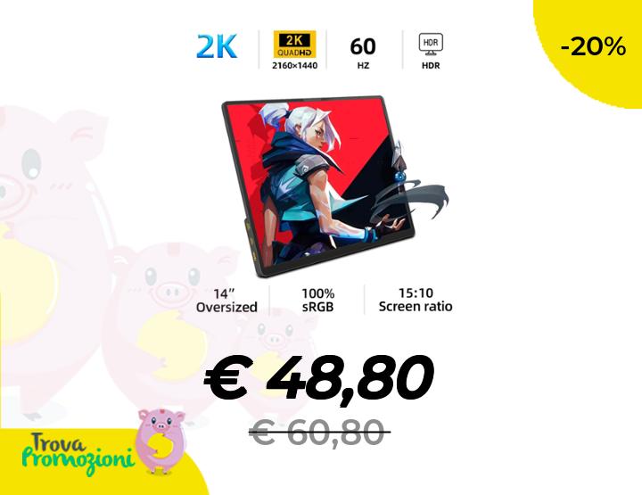 ๐๐ผ ZSUS 2160*1440 Monitor portatile da 14 pollici 2K 60HZ per laptop XBox PS4/5 Switch TV Box Telefono cellulare Estensione PC Mobile