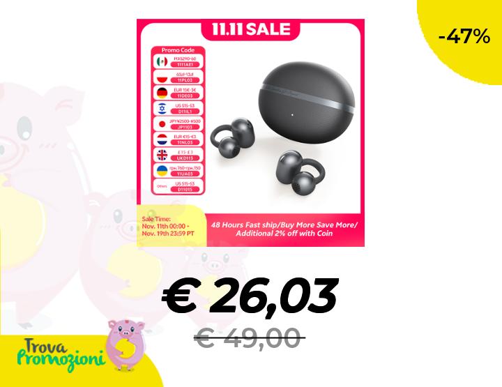 ๐๐ผ QCY Crossky C50 Auricolari wireless a orecchio aperto Bluetooth 6.0 Comfort Clip On Sport Auricolare 4 Mic AI Chiamata chiara Bass Boost Cuffie