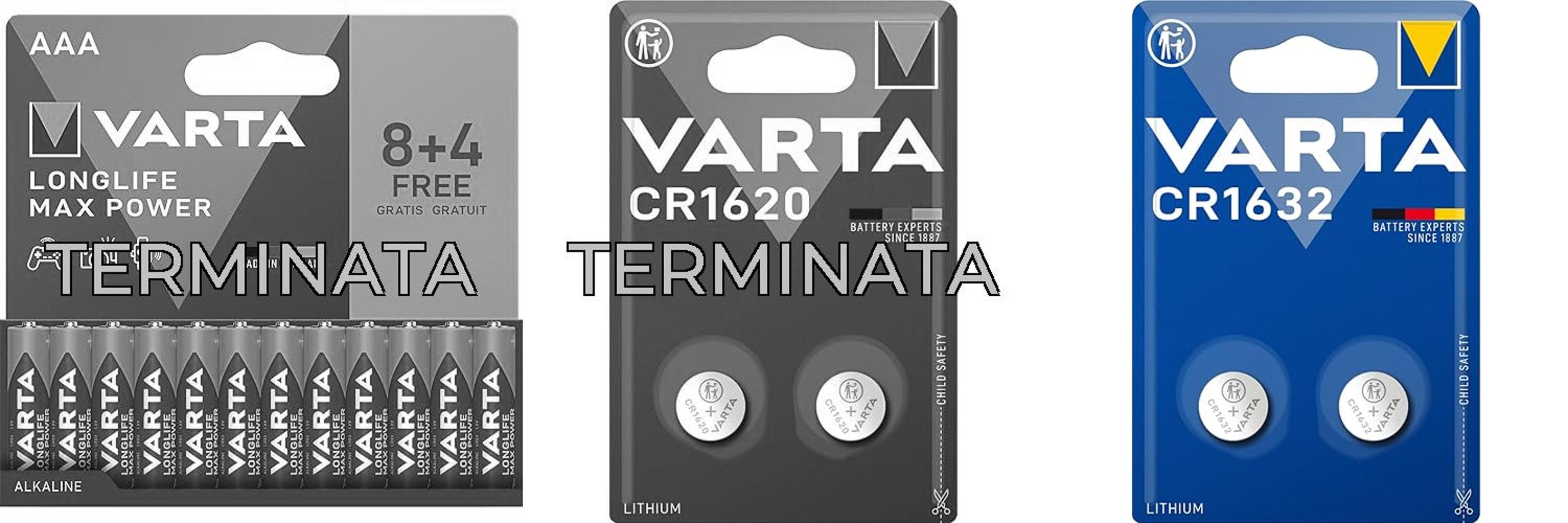 ๐๐ผVARTA CR 1620, 6620101402, Batteria Litio a Bottone, Piatta, Specialistica, 3 Volts, Diametro 16mm, Altezza 2mm, confezione 2 pile