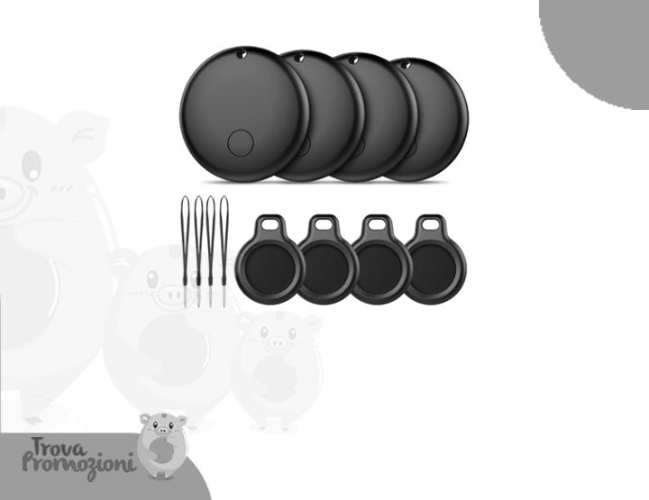 ๐๐ผ Android Smart Tag, Tracker con Google's Find Hub (Solo Android), IP68 Impermeabile, Bluetooth Localizzatore con Custodia Protettiva, Trova Oggetti per Chiavi/Bagagli/Portafogli, 4 Nero