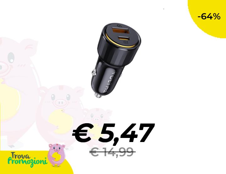 ๐๐ผ VOLTME USB C Accendisigari 48W 2 in 1 Nero, Caricabatterie Auto Accendisigari Auto 48W, Caricatore Rapido USB C PD/QC 3.0 Presa Accendisigari Compatibile con telefono, tablet, Pixel, Samsung S22/S23