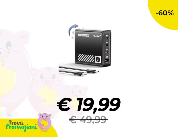 ๐๐ผ MOVE SPEED Caricatore USB C da 140 W, protocollo PD 3.1, tipo C, GaN, caricatore rapido a 4 porte, per MacBook, iPhone, iPad, Galaxy โ con cavo di ricarica rapida da 240 W