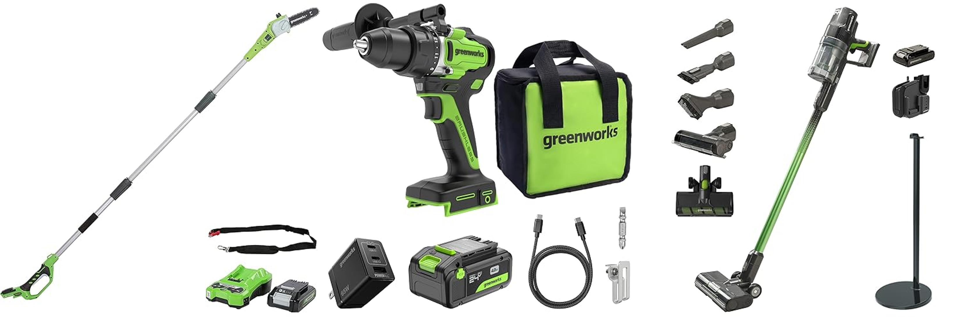 ๐๐ผGreenworks 24V Trapano a percussione a batteria 90Nm Brushless, Grado professionale, frizione 21, batteria USB-C 4.0Ah (24.000mAh), caricatore veloce USB-C da 65W (3 porte) e cavo USB C (1M) DD590