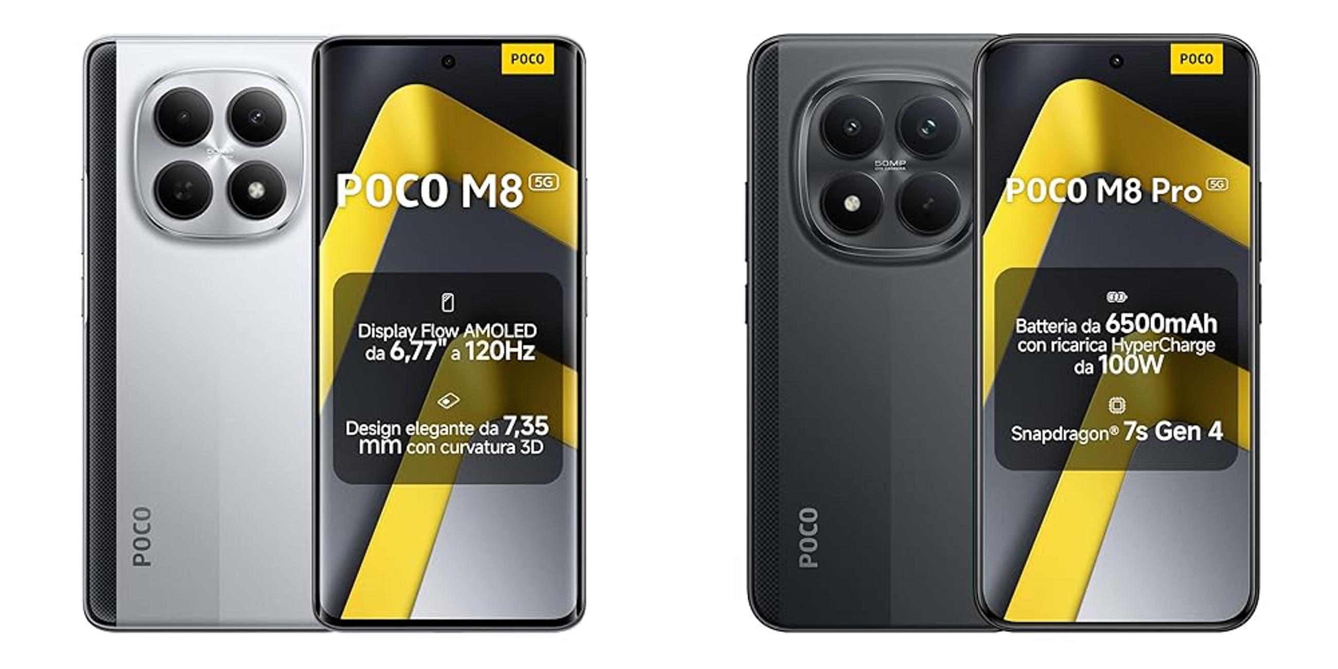 ๐๐ผXiaomi POCO M8 5G, Smartphone 8+256GB, Display AMOLED FIoW 6,77" 120Hz, Snapdragonยฎ 6 Gen 3, Doppia fotocamera AI 50MP, Design curvo 3D da 7,35 mm, Argento, Garanzia 2 anni, Caricatore non incluso