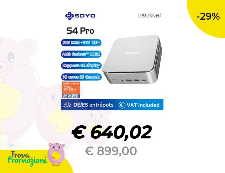 ๐๐ผ SOYO S4 Pro Mini PC AMD Ryzen Ai 9 365 Windows 11Pro M.2 SSD Wifi6 BT5.2 32GB DDR5 4800MHz 1TB SSD PCIe3.0 PC da gioco AI Computer