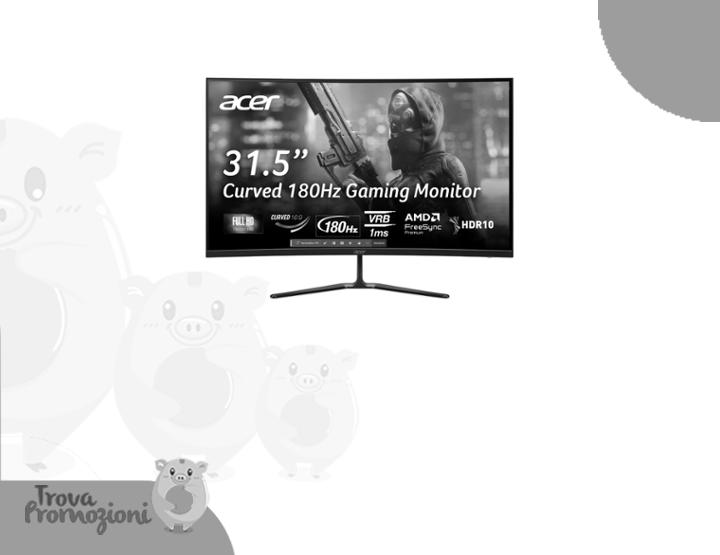 ๐๐ผ acer Nitro ED320QRS3biipfx Monitor Gaming Curvo FreeSync Premium, 31.5", Display FHD VA,180 Hz, 1 ms (VRB), HDMI 2.0, DP 1.2, Audio out, Zeroframe, Luminositร 250 cd/m2, Cavo HDMI Incluso, Nero