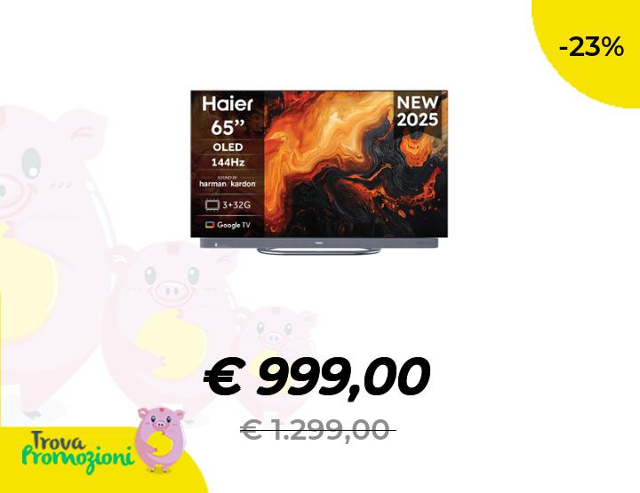 ๐๐ผ Haier OLED 4K HDR H65C95EUX 65" Smart TV, Google TV, Dolby Atmos, Suono Harman Kardon, Movimenti fluidi 144Hz, Controllo Vocale, Bluetooth 5.2, HDMI 2.1 x 4 [2025]