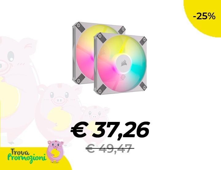 ๐๐ผ Corsair AF120 RGB SLIM, Kit Ventola 120 mm PWM con Cuscinetti Fluidodinamici - Profilo Sottile per Custodie Piccole - 8 LED RGB Indirizzabili - Doppio Pacchetto con Lighting Node CORE - Bianco
