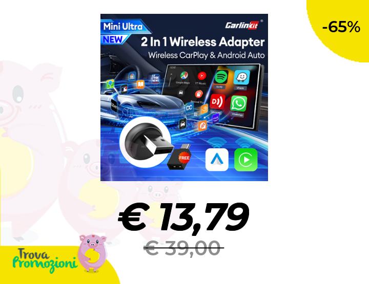 ๐๐ผ Carlinkit Mini Ultra Adattatore Wireless CarPlay & Android Auto, Converti il Sistema di Fabbrica da Cablato a Wireless, Connessione Rapida USB-A/USB-C per iOS 10+ & Android 11+, Plug & Play, Aggiornam