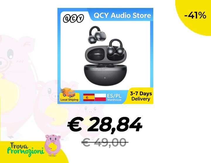 ๐๐ผ QCY Crossky C50 Auricolari con clip Auricolari aperti Wireless Bluetooth 6.0 Cuffie 35 ore di riproduzione Auricolari confortevoli per il fitness IPX5