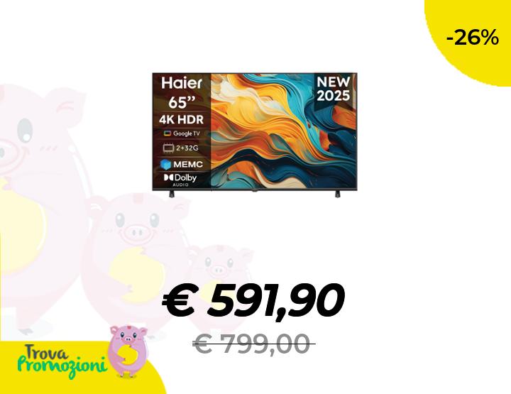 ๐๐ผ Haier LED 4K UHD H65K85FUX 65" Smart TV, Google TV, Dolby Audio, HDR 10, Telecomando Smart, Google Assistant, Bluetooth 5.1, DBX TV, HDMI 2.1 x 4 [2025]