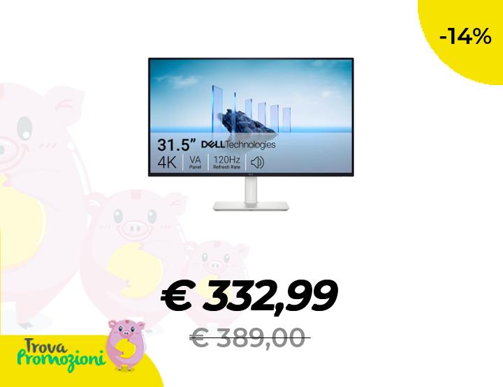 ๐๐ผ Dell 32 Plus Monitor - S3225QS, 4K UHD (3840x2160), 120Hz, VA, 4ms, AMD FreeSync Premium, 95% DCI-P3, HDR10, Regolabile in Altezza, Altoparlanti integrati, DisplayPort, 2 HDMI, 3 Anni di Garanzia