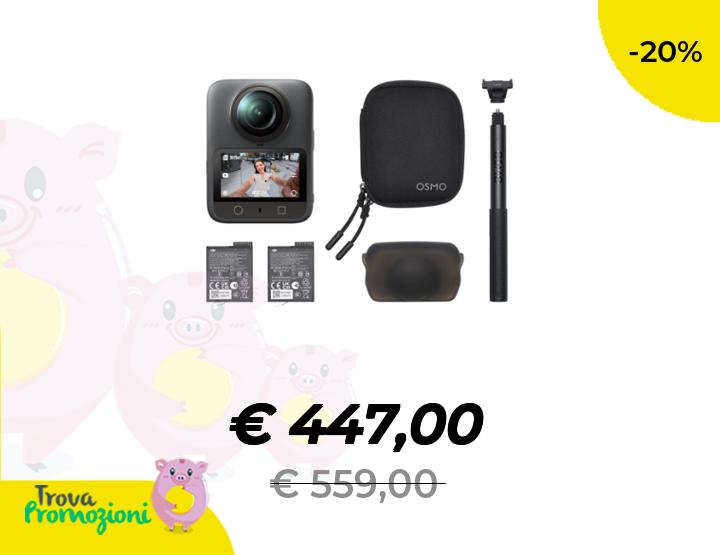 ๐๐ผ DJI Osmo 360 Combo Essenziale, fotocamera 360 con immagini a 360ยฐ da 1 pollice, video a 360ยฐ nativi in 8K, kit con manico telescopico invisibile da 1,2 m, durata della batteria estesa con 2 batterie