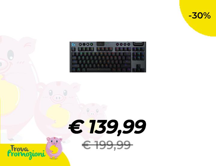 ๐๐ผ Logitech G G915 X LIGHTSPEED TKL Tastiera gaming wireless a profilo ribassato, copritasti in PBT bicomponente, tasti completamente programmabili, GL Red Linear - PC/Mac, US INTL QWERTY Layout - Nero