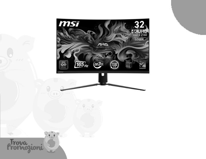 ๐๐ผ MSI MAG 321CUP QD-OLED Monitor Gaming Curvo da 32" UHD - 1700R, Pannello Quantum Dot OLED (3840 x 2160), 165Hz / 0,03ms, 99% DCI-P3, ฮEโค2, DisplayHDR True Black 400, DP 1.4a, HDMI 2.1, USB Type-C