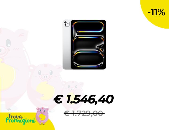 ๐๐ผ Apple iPad Pro 11'': Chip M4 Progettato per Apple Intelligence, display Ultra Retina XDR, 1TB, fotocamera frontale e posteriore da 12MP, Wi-Fi 6E, un giorno intero di batteria โ Argento