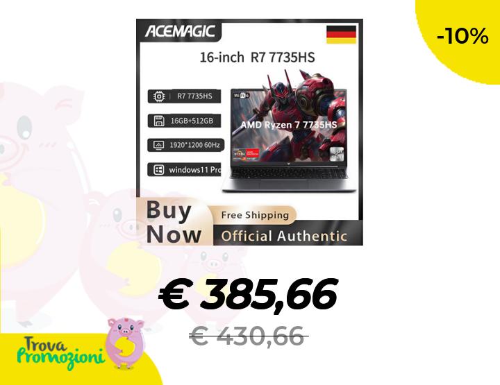 ๐๐ผ ACEMAGIC Laptop da Gaming 16 Pollici, Processore AMD Ryzen 7 7735HS, 16GB RAM DDR5, 512GB SSD, Display IPS, Windows 11, per Videogiochi