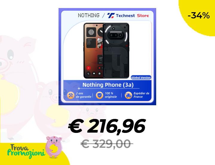 ๐๐ผ Versione globale Niente Telefono (3a) Qualcomm Snapdragon 7s Gen 3 Schermo AMOLED da 6,77 pollici 120 Hz Doppio 50 MP