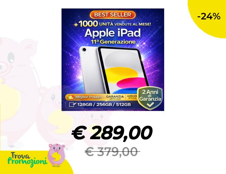 ๐๐ผ Apple iPad 11ยช Generazione 128GB/256GB/512GB, Schermo 11" Wi Fi 6, Touch-ID, Chip A16