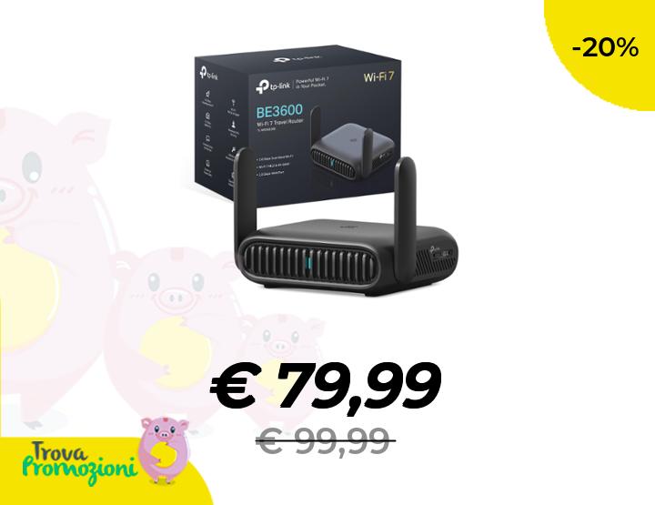 ๐๐ผ TP-Link TL-WR3602BE Router WiFi 7 Portatile BE3600 Dual Band, 2.5G + Gigabit, VPN/WireGuard, Type-C, Modalitร Hotspot/AP/Extender/Client, Alimentabile da Power Bank, 2 Antenne, Casa/Viaggio