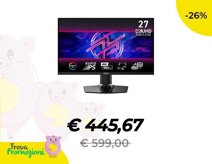 ๐๐ผ MSI MPG 274URF QD Monitor Gaming 27" UHD 4K (3840 x 2160), Pannello Rapid IPS, 160 Hz, 0.5 ms (GtG), 145% sRGB, Design Senza Cornice, VESA DisplayHDR 400, DisplayPort 1.4a, HDMI 2.1, USB