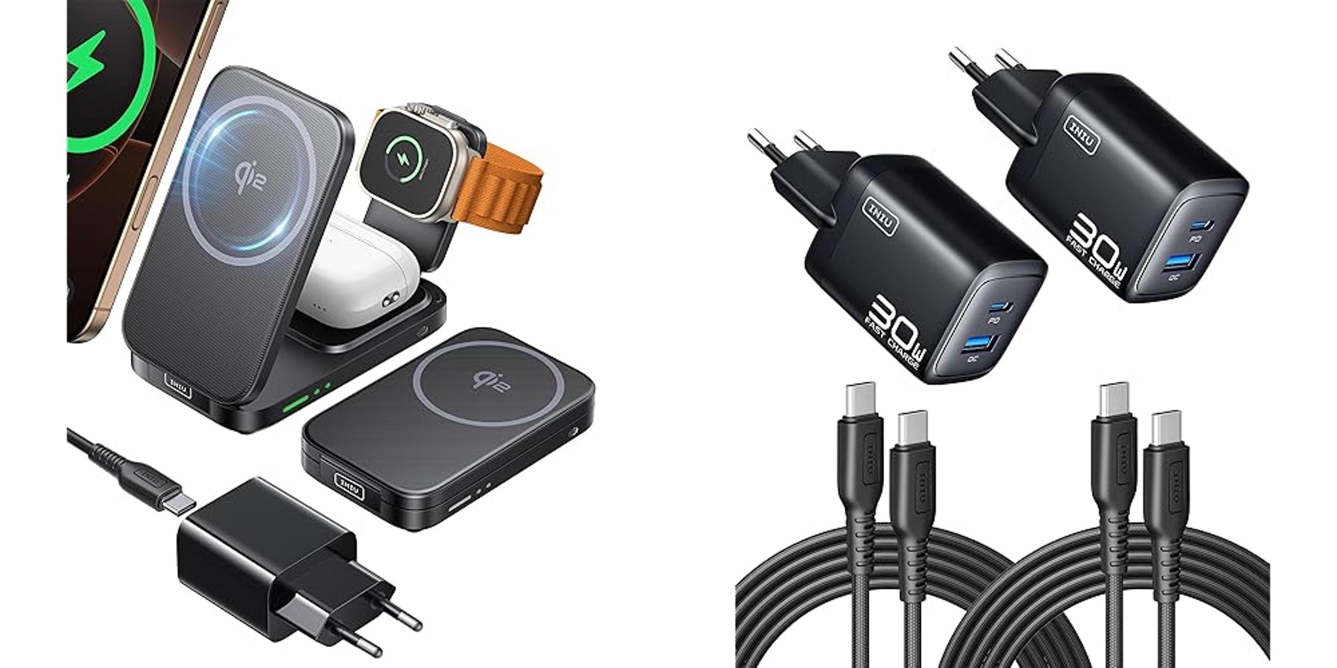 ๐๐ผINIU Caricatore Wireless 3 in 1, 15W Certificato Qi2 Stazione di Ricarica Magnetica Pieghevole da Viaggio, Caricabatterie con MagSafe per iPhone 17/16/15/14/13/12 Serie, Apple Watch, AirPods Pro/4/3/2